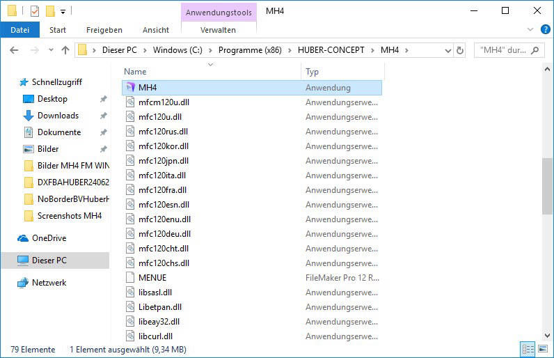 Nach der erfolgreichen Installation kann von dort aus das im Ordner das Programm "MH4.exe" gestartet werden.